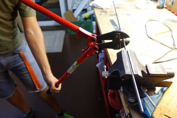 2. Utilizar el Cortapernos o sierra para metales para cortar la barra en las ubicaciones marcadas