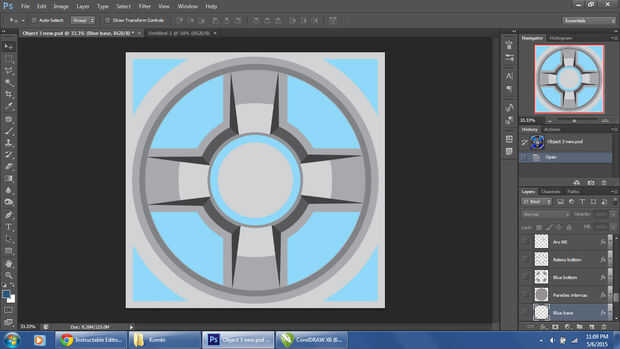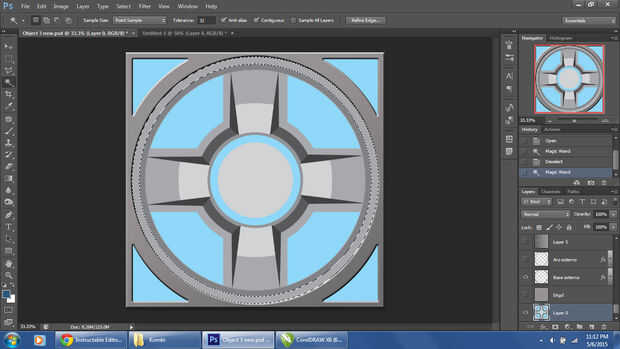 En primer lugar, guardar el vector creado en CorelDraw y exportar como jpg de alta resolución para usar en Photoshop (en este punto, usted podría notar no estamos muy familiarizados con el ilustrador). Una vez tienes tu imagen, y si ha seguido los consejos de utilizar colores contrastantes loco, usted puede seleccionar cada sección con la herramienta varita mágica. Crear una nueva capa (Ctrl + Shift + N) y rellenar la selección con un tono medio de gris (hay más de 50 para elegir).
