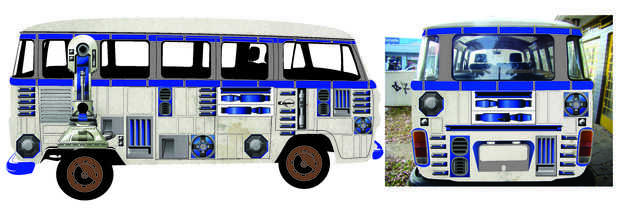 El fondo fue inicialmente esta textura blanco sucia, porque foto R2 mejor que blanco llano. Pero porque realmente no lavamos el autobús tan a menudo, pensamos ensuciarse por sí sola y terminó con un leve color beige/crema-blanco en su lugar. Y si lo piensas, R2 no es particularmente limpio durante la mayor parte de las películas, así que consigue más de fiar (qué excusa).