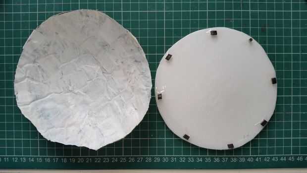 Coloque los imanes permanentes en los bordes de los círculos (comprobación de la polaridad) y pegar.