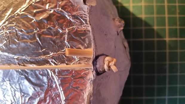 Coloque la banda elástica en la parte superior de la sección hemisférica, utilizando unos palillos para hacer que la parte más fuerte.