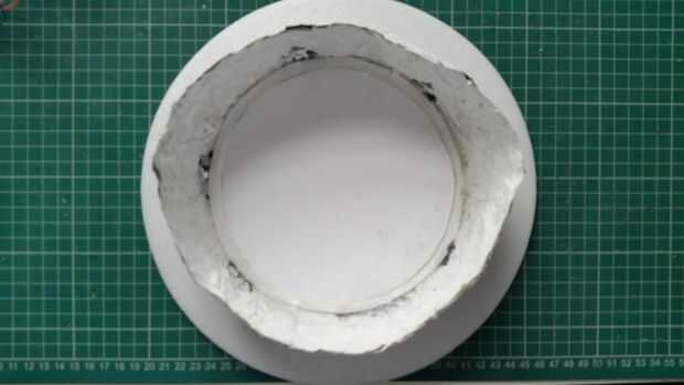 Ahora tiene la parte superior, un disco de espuma del mismo diámetro y la sección hemisférica, con el otro pegamento disco dentro.
