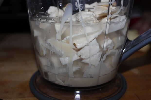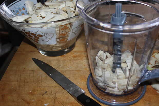 1. Coloque 2 tazas de rábano picado en la licuadora/batidora.