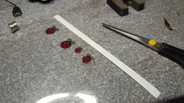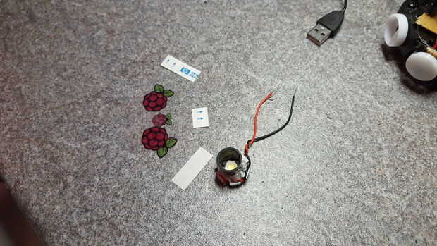 Como toque final he impreso un logotipo de frambuesa Pi sobre el papel de transparencia y pegados dentro de la caja de RabbitPi, para que el vientre blanco LED ilumina la imagen a través de su translúcida piel.