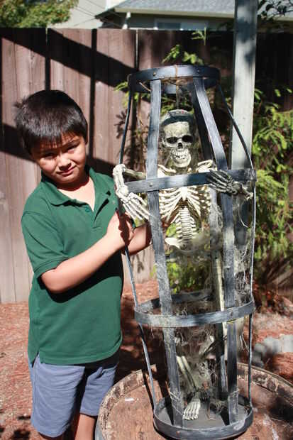 tuve un viejo Sr. Jaber Jaw (esqueleto que habla), que dejó de hablar de quedar durante la noche y se mojó. Se venden estos que no hablar más barato. Así que para hacerlo más interesante, lo puse en una jaula de tortura hecha de chatarra Masonite recogí en el trabajo. Sostiene mejor que la cartulina, por lo que su trabajo puede verse año tras año. Esto es lo que tenía que trabajar desde, no dude en mejorar. Cuando construí mi, acababa de usar pegamento (sin tornillos) y aparte ha llegado un par de veces. Así que he añadido los pasos para los tornillos. Añaden una apariencia de remaches que añade a los detalles. Puede utilizar masilla para rellenar la ranura, si quieres. Probablemente no incluso necesita pegamento donde los tornillos son utilizados y eliminan algún tiempo de secado, acelerando las cosas hasta a una generación de fin de semana. No pongo una tapa en la mía pero se puede construir uno igual en la parte inferior.