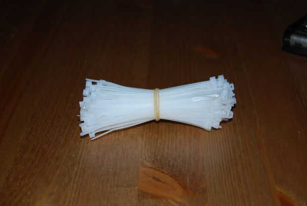 En primer lugar, se necesita zip lazos en varios tamaños (recomiendo un paquete de la variedad), una especie de ganchos de resorte/caribeaner y un paquete de "cubos del almacenaje de la Asamblea del uno mismo" (paneles cuadrados de alambre con piezas conector.)