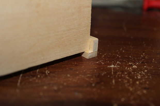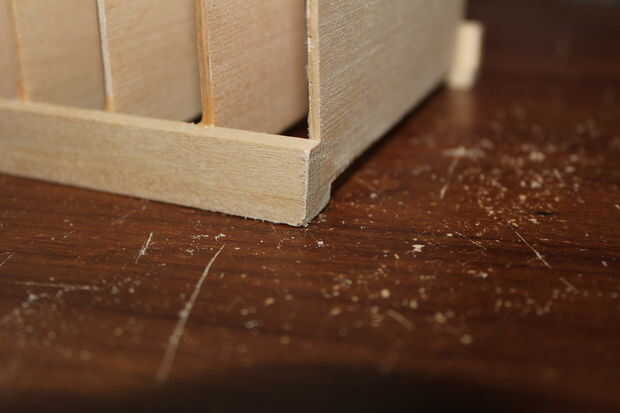 -Una vez que se pegan todas las piezas del estante en su lugar, mira a ver qué lado los soportes laterales están pegando más, corte el otro lado al ras con el estante superior con los dientes finos vio