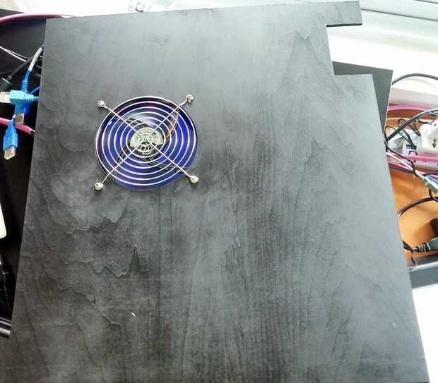 Cortar un agujero en el panel lateral de madera y fijar el ventilador de enfriamiento. Estoy viviendo en Singapur está caliente aquí, pero tal vez el ventilador será opción en Alaska. Lindo un agujero en la parte inferior del panel lateral para dar paso a los cables que irá dentro y fuera de la parrilla. Pintar los paneles de madera a tu gusto artístico. Fijar el ventilador.