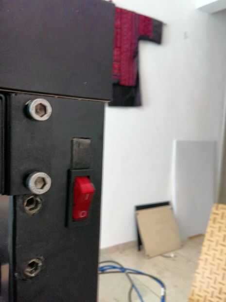 He instalado un interruptor en la parte delantera. Es opcional pero bueno tener. Bu solo cuidado de no cortar demasiado cerca del agujero de la parte superior. La pata de la mesa sobre todo es hueco, pero no para el primero en 35mm. Tan lindo el orificio 40mm desde la parte superior o no podrá insertar el interruptor. Como se puede ver en la foto, he tenido que parchear el agujero.