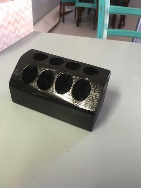 Lijar toda la mancha apagado y pintado con una pintura de alto brillo negro. Podría poner un material suave debajo dejar arañazos. Los otros dos que hice fueron enarenados la apliqué cera de abejas a ellos.