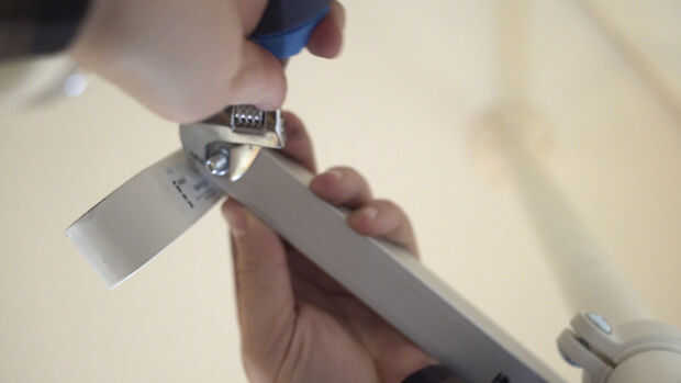 - Otra vez usando la llave curva hacia fuera los ganchos para hacer más amplia (si tiene un tubo superior grueso o ajuste)