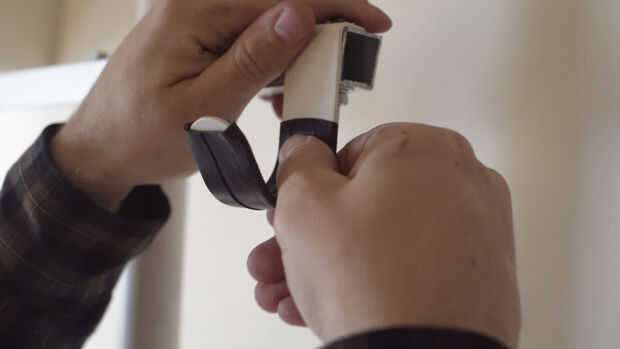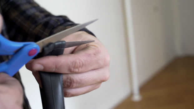 - Con las tijeras cortadas piezas de 2-4 de 4-5 pulgadas llanta tiras y meneo en ganchos. (que sujete el marco de la bici mejor y protegerlos de arañazos)