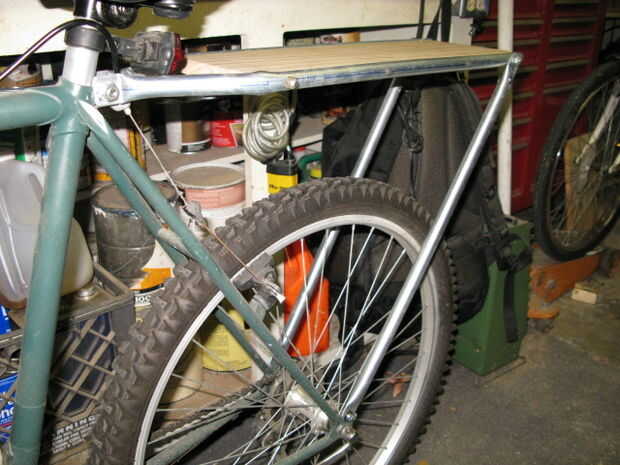 El paso final consiste en soportes de corte que van desde el eje trasero al bastidor y acople a la varilla roscada posterior. Tendrás que medir cuidadosamente para obtener el nivel de rack. Me adjunta el estante primero y luego mide los montantes.