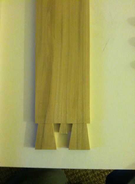 Los dos rieles de la torre soportan todo encima de la base (no que 24 botellas de esmalte de uñas son muy pesados) así que quería una junta que tendría un montón de superficie para unirse a la parte superior a la base. Este fue un proyecto poco buena práctica algunas colas de Milano en! Los carriles laterales de la torre son 1/4" álamo de 2 3/4" de ancho. Usé un marcador del medidor de rueda para ajustar la profundidad de las colas y marcadores de la silla de montar para marcar las colas de la paloma se la cola de pato. Con un tirón Japon vi cortar los dos dientes externos y una sierra de marquetería para cortar la pequeña cola de Milano. Ya que una sierra de marquetería no corte muy limpio o estrecho, corte la pequeña cola de pato un poco orgulloso de mi puntaje líneas y limpió con un cincel y un cuchillo.