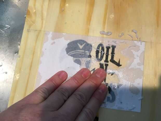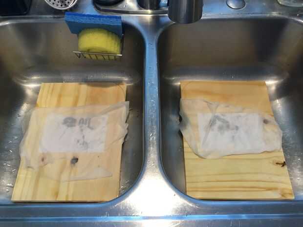 4. secar toda la noche y luego sumérjala en agua. Una vez que el papel realmente mojado, apenas empiezas a frotar con las manos y el papel se desprenderá dejando su imagen en la madera.