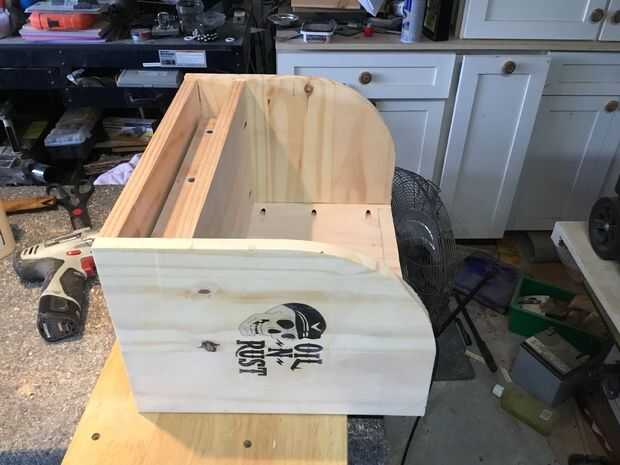 no tenemos suficiente espacio de pared del garage para guardar herramientas de jardín de mi esposa, sobre todo, no de la manera tradicional donde cada uno está plana contra la pared y al lado de otros.Tomé mi inspiración desde el cartel marcos de pan