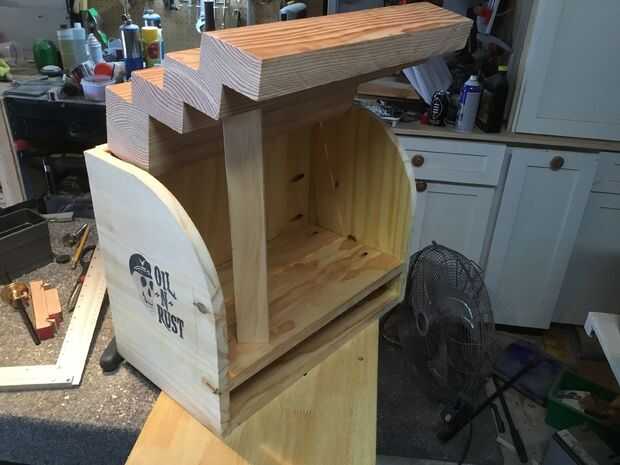 En mi dibujo inicial tenía un compartimiento en la parte posterior. Fui con el diseño original y estaba en mi forma de cortar el agujero en la parte trasera y acabado de la puerta cuando la madera de pino del Banco se me cayó y se rompió en cuatro pedazos... Estaba bastante molesto, pero la necesidad es la madre de la invención. No tener suficiente madera de pino para hacer otra parte posterior, utiliza galletas y se unió a tablones de pino de 1 x 4 para hacer otra espalda. Sabiendo las galletas obstaculizar que la puerta sólo iba a omitirla. Es entonces cuando me pegué con un poco de inspiración. Por qué no hacer la cremallera Levante para el almacenamiento y no tienen un compartimento en la parte posterior. Realmente odiaba perder el espacio allí. En definitiva, creo que mi idea final fue el mejor de todos modos.