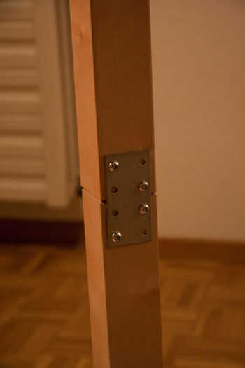 Fijar los pies de las tablas junto con soportes y tornillos de madera prestando atención para obtener el mejor posible alineación. La tarea se completa fácilmente acostándose su estante de lado.