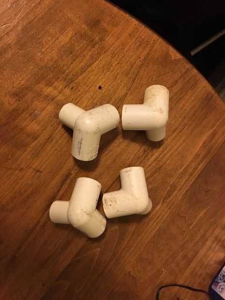 Utilizaré las piezas que utilicé anteriormente para un neto de habilidades futbolísticas. Consisten en tubos de 3/4 de pulgada y 1/2 en tubo. Junto a cuatro, 3/4' "3 modo codos con una ranura de roscado, para esta ranura tengo cuatro casquillos de extremo roscado de la tubería de 1/2 pulgada.