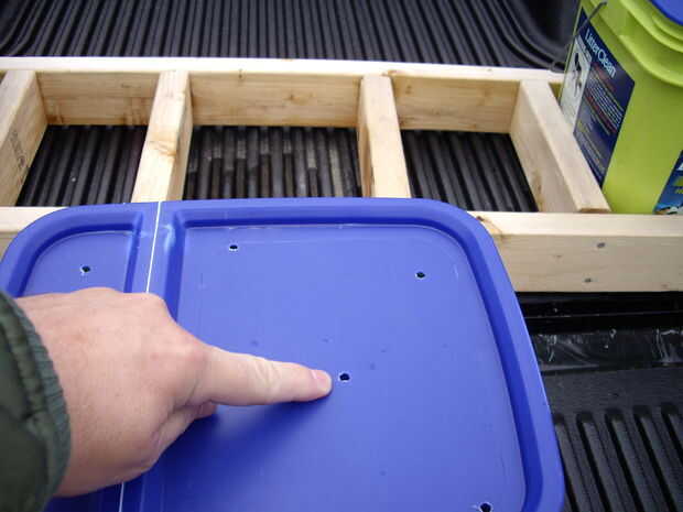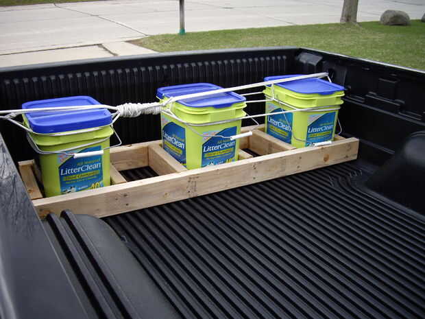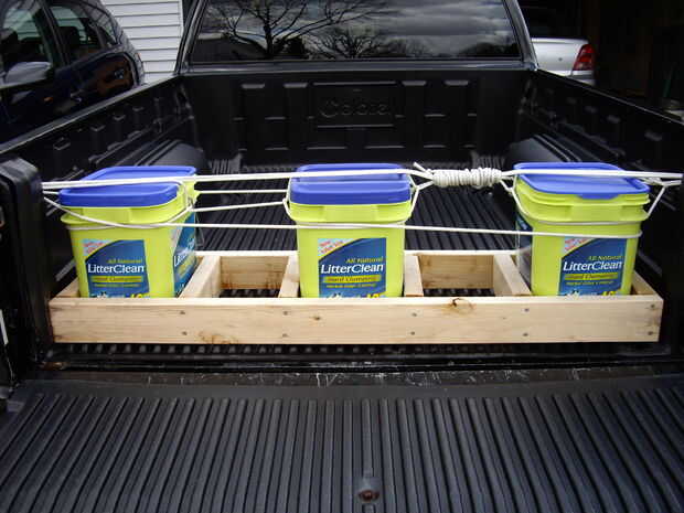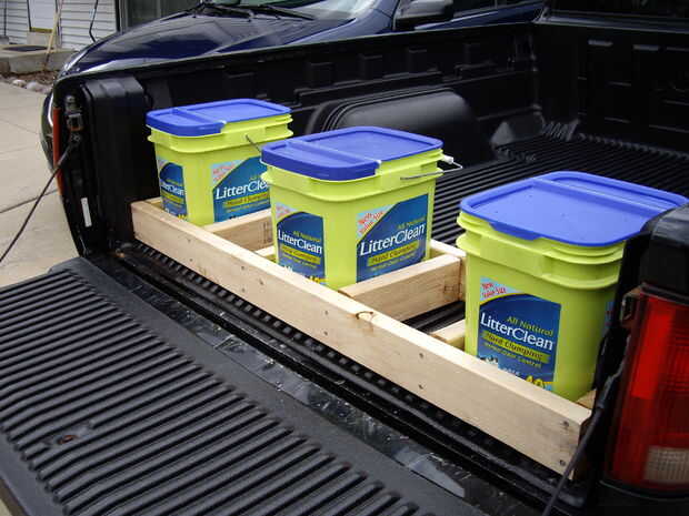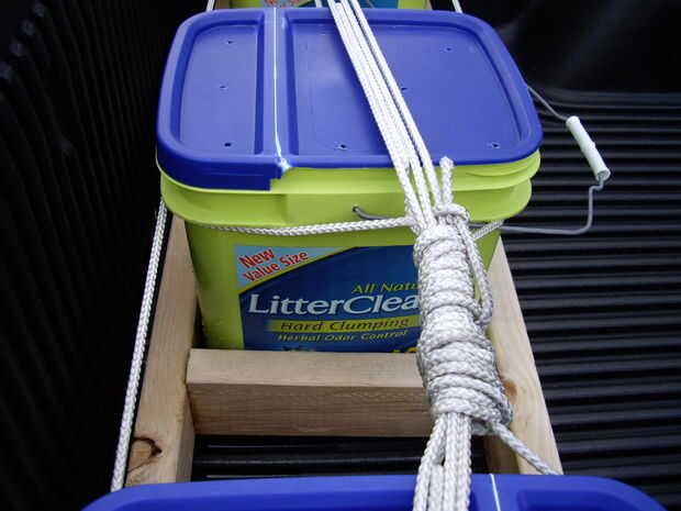 En años anteriores azotó contenedores de basura de gato plástico llenados de arena en lugar, pero se deslice y a veces romper. Este año yo todavía utiliza los contenedores de basura de gato, pero construyó una base de madera para evitar que los recipientes estacionarios. Funcionó tan bien, que pensé que era digna de convertirse en mi primer Instructable.