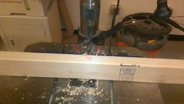 Tenga en cuenta los soportes a ambos lados del taladro. Les permite centrarse en el trabajo y no equilibrar el aire 2x4.in.