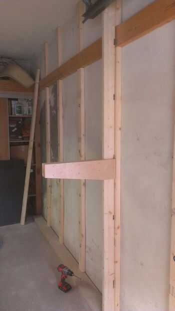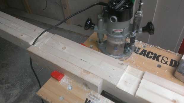 Después de que los canales se han cortado en los soportes verticales, sujete a los listones de 2 x 4 con 3 3/4" #14 tornillos para madera.