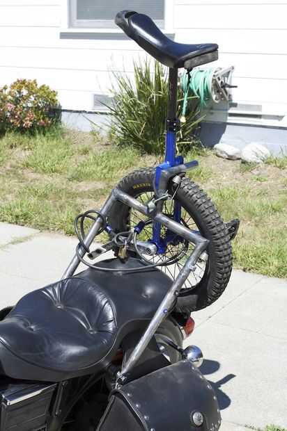 después de ver un instructivo para un soporte sostener un monociclo en una moto pensé que posteo fotos de mi solución al mismo problema. He incluido un montón de opiniones por lo que usted puede averiguar por ti mismo. Tengo lamentablemente no hay fo
