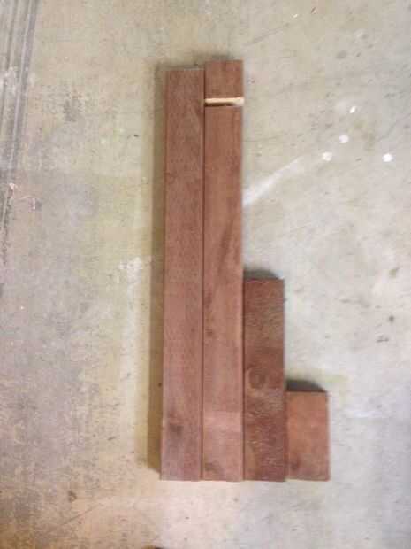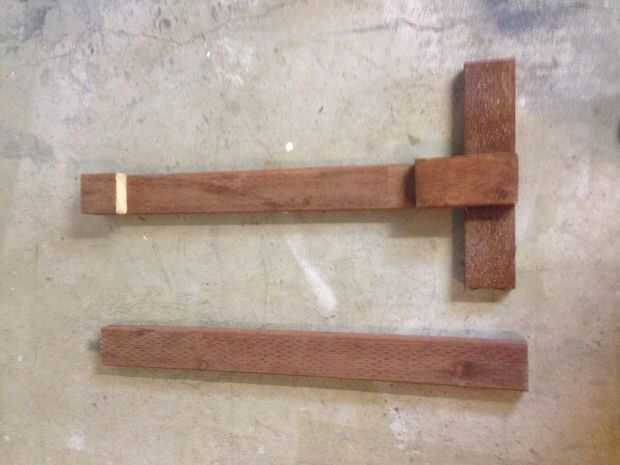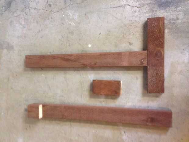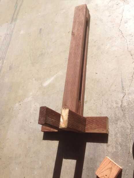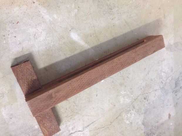 Corte dos 3 piezas del pie. Tomar una de las piezas y corte una 3 1/2" pieza el extremo (que se utilizará como el pedazo de centro en la parte superior).