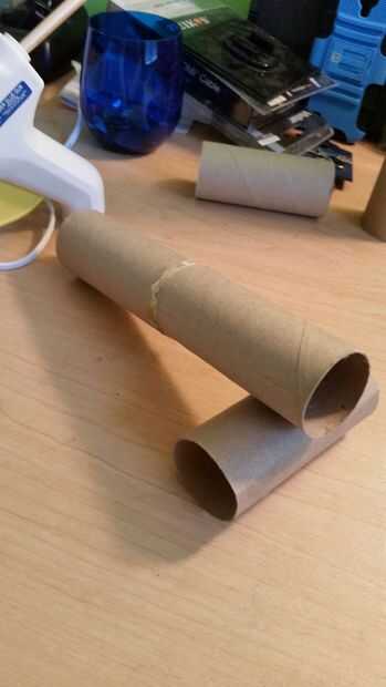 Después de los 2 rollos han sido pegadas, pega papel higiénico más 2 rollos en la parte inferior del tubo que acaba de hacer. Opcional: Corte de longitud excesiva que no desee.