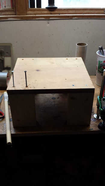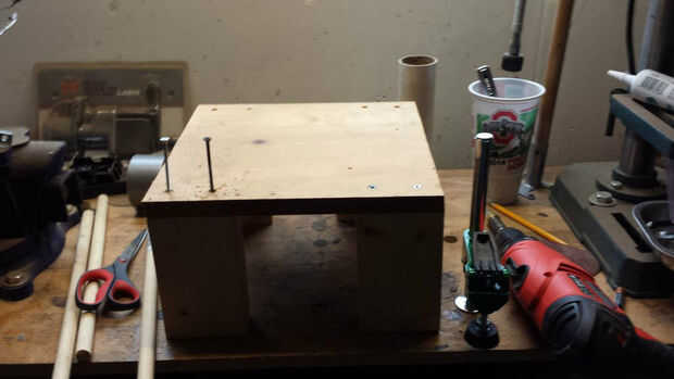 Con los componentes principales del corte de rejilla es momento de montarlos. Elegí 2.5" cubierta tornillos autorroscantes por lo que no es necesario perforar agujeros en las piernas... y es lo que tenía en mano. Tomé la parte inferior de la parrilla y trazó el contorno de las patas de 2 "x 4" en las esquinas. Luego reprimieron en mi banco de trabajo y utilizar una broca de avellanar para perforar agujeros que dejarán el flush de tornillos a la superficie. Una vez tuve los agujeros perforados Coloque la base en las piernas y condujo los tornillos una vez que aseguraron que fueron alineados a los lados de las piernas y la base. Entonces repetí este proceso para la parte superior de la rejilla. Y fue durante esta parte de la Asamblea me encontré con uno de los retos de reutilización de materiales. La parte superior no era de una anchura constante por lo que un ligero desplazamiento entre la tapa y la pierna. Esto es donde usted necesita recordar mi responsabilidad sobre carpintería cobardes.