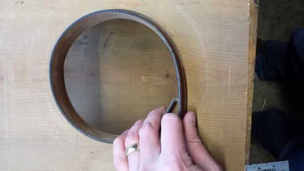 Con la estructura completada es tiempo para rellenar la parrilla por lo acabado de la Grolwer el proyecto de ley no está estropeada en tránsito. Usé un cinturón viejo de cuero como mi material de relleno. Envuelve la correa interior perímetro del orificio y donde la banda se reunió. Luego usé un par de tijeras para cortar la cinta en ese momento.