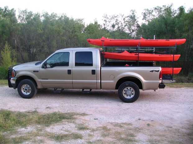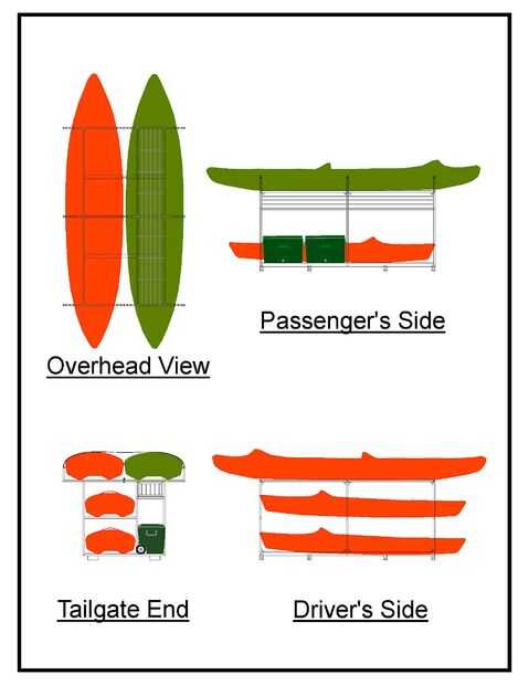 Aquí es una gran manera para transportar a kayaks (5) además de los remos, chalecos salvavidas y otros engranaje cuidadosamente en la parte trasera del pick-up. Outfitters en nuestra área de cobran $40 por kayak por viaje que te deje aguas arriba ($200 diarios para una familia de 5). Con este montaje, que sólo cobran nosotros $25 que nos deje en el mismo lugar y para conducir mi carro hacia el mismo lugar para llevar aguas abajo. Ahorra por lo menos $175 cada vez que vamos!