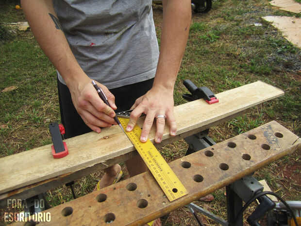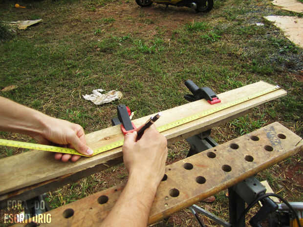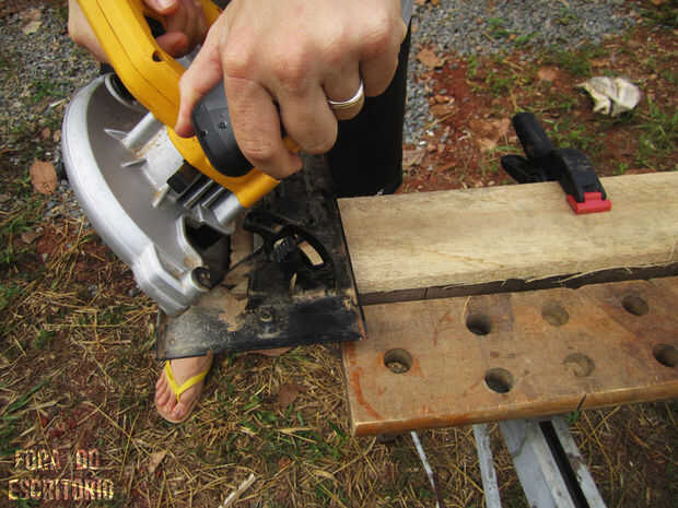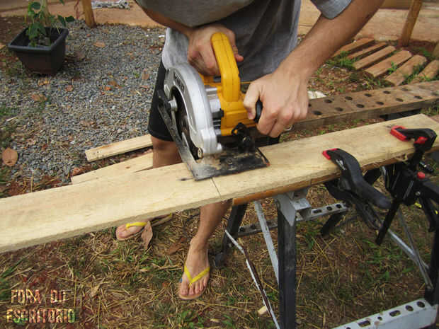 Utilizar la sierra circular y cortar dos tablas de la tarima que hayas elegido con 50cm de largo.