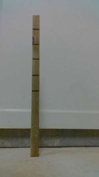 Usando la mesa Sierra de corte en la madera pequeños fragmentados sólo densamente bastante para caber apenas la madera contrachapada fina en. (debe ser hermético a menos que quieras utilizar el pegamento). Asegúrese de que usted mida la altura del objeto su mostrando así que usted puede cortar las aberturas lo suficientemente lejos uno del otro para adaptarse.