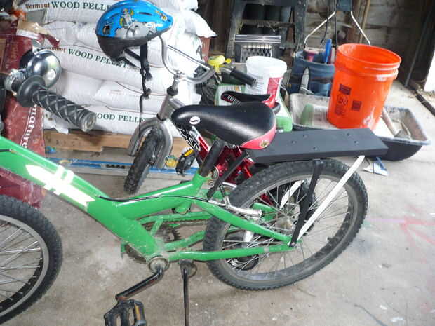 Monta una bicicleta de 20'. No quiere una cesta en la parte delantera, y pensamos que sería ideal un estante de la plataforma trasera. Como la moto no tiene un guardabarros trasero y le encanta montar a caballo a través de charcos, servirá para mantener la espalda seca, demasiado. Cuando fuimos a nuestra tienda de bicicletas local, nos dijeron que no las hizo para tan pequeño una bicicleta. Piensan que uno podría tener, pero sería un poco grande y muy costoso. Como es una bicicleta usada, negó.