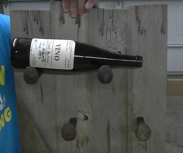 Yo estaba caminando por mi patio de salvamento local y se encontró con un balde lleno de espigas de rail road. Sabía que había un uso para ellos en una especie de proyecto reclamado pero no tengo uno en mente en el momento. Después de comprar 16 picos me fue a casa y miré alrededor de la tienda de ideas. Yo tenía un montón de piezas cortas de madera que encontré de una plataforma al mismo tiempo de pasear a mi perro y entonces tuve la idea: un botellero de pared. La madera serviría como el soporte y las puntas sería el portabotellas. Así comenzó el proyecto.