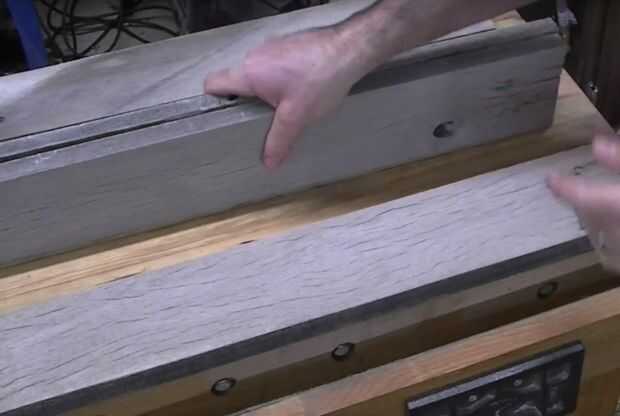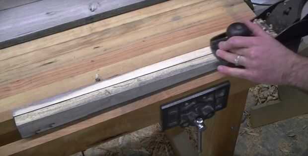 Las aristas que están siendo pegadas juntos deben ser limpio de suciedad y plano para el pegamento trabajar. Para hacer eso, yo doblar la Junta para que los bordes colindantes son cara arriba. Luego colocar los dos tableros en un vicio y plano de las superficies hasta que la madera esté limpia. Esto asegura que la articulación es plano y el paralelo de los bordes cuando los tableros son acostado para el pegamento hacia arriba.