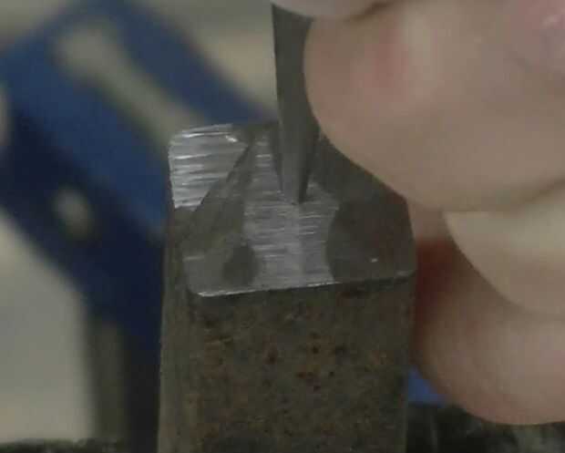 Use un punzón para marcar una ubicación para el orificio a taladrar en el centro de la espiga de la carretera de carril.