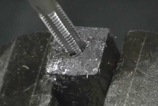 Utilizar un taper tap para iniciar el corte del hilo de rosca en la espiga y terminar con un toque de fondo. Usé un grifo de 1/4"-20 de minas para el agujero era apropiado para ese conjunto de grifos. Aquí le damos la broca mango de grifo y grifo conjunto que he utilizado.
