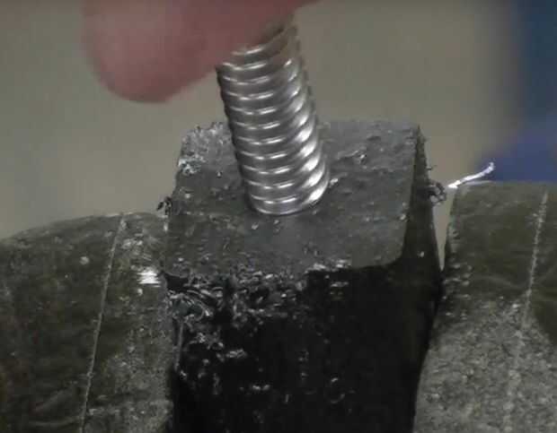 Despacio taladre el agujero de 1/2"- 5/8" profundidad agregando aceite para facilitar el corte.