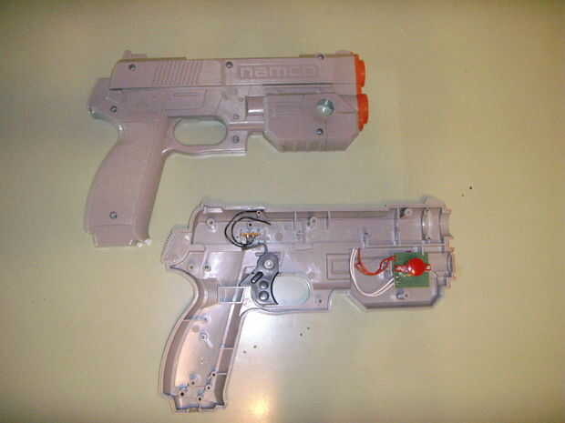Después de quitar todos los tornillos que sujetan el caso juntos examiné el contenido. El hardware original voy mantuve el ensamble del gatillo y el A / botones de B. Todo lo demás tiene corte. Tenga cuidado de dejar más cables conectados a las piezas que se pueden utilizar, esto ahorrará soldadura extra más tarde.