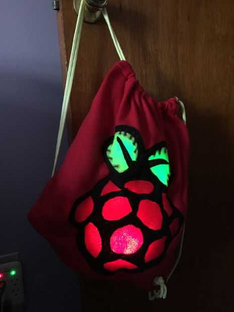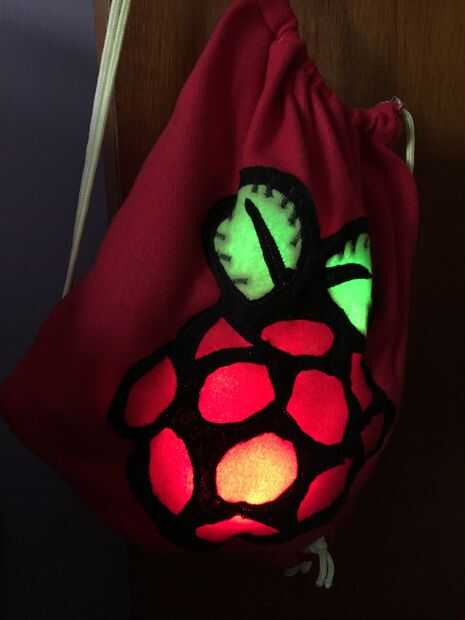 Hacer que esta luz usable hasta emblema del Raspberry Pi en este saquito práctico fresco que también se dobla como una mochila. ¿Lo asombroso es?