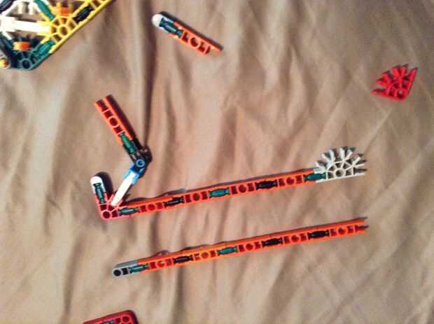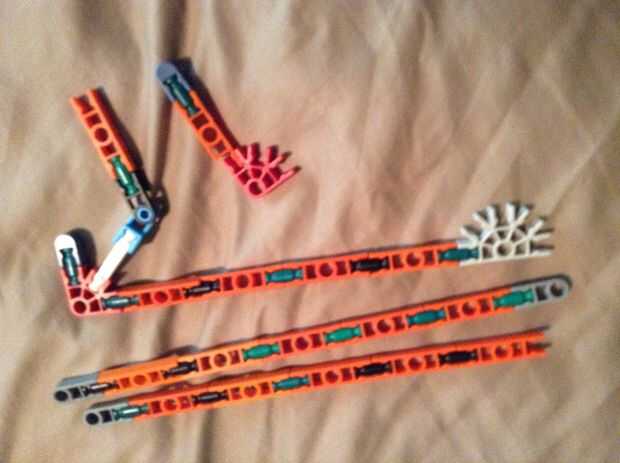 (Tengo unas varillas largas naranja doblados así que los corte para las piezas)