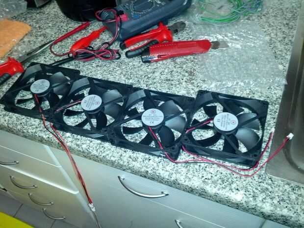 La resistencia estructural está dada por los amarres de cable que pasen por los orificios en la esquina de cada ventilador y los fans se unen.