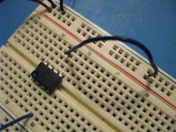 (Por favor, darse cuenta de que cuando hablo de los pines me refiero a los pasadores en orden a la izquierda de la marca de sincronización (probablemente un guión o marca circular en un extremo del chip junto a la clavija 1. Pin 1 es el más a la izquierda bajando del lado izquierdo al pin 4 y continuar en la parte inferior del otro lado a 5 va por el lado derecho de pin a pin 8).