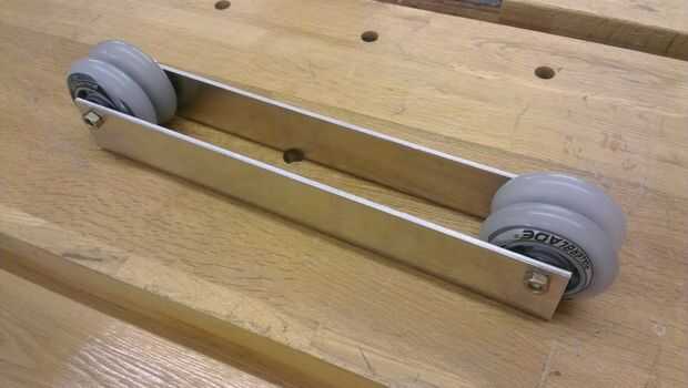 En gran medida el aspecto más difícil de esta compilación determinaba las ruedas adecuadas para él en. No muchas aplicaciones llaman para empotrar, agarre las ruedas de polea de rodamientos, por lo que no son el tipo de cosa que usted puede coger fácilmente. Durante la investigación de plataformas de cable, encontré los mejores resultados los solían ser grandes y de ruedas de bicicleta, o ser pequeño pero personalizadas han convertido las ruedas. El último es lo que acabé haciendo yo. Podría hacer un dolly ejecución en hardware común, pero no sería fácil y que no realizar tan bien. Ruedas de la polea para descender tramos de cable y plataformas de gravedad, parecen bien.