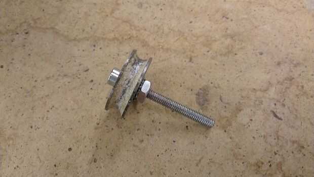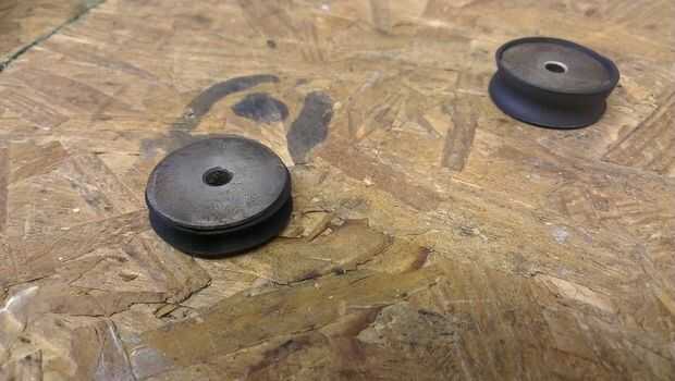 Falta (parcial) tres: Polea metal ruedas sobre ejes metal. Limpiado y lubricado, funcionaron, pero en ninguna parte cerca tan bien como quería.