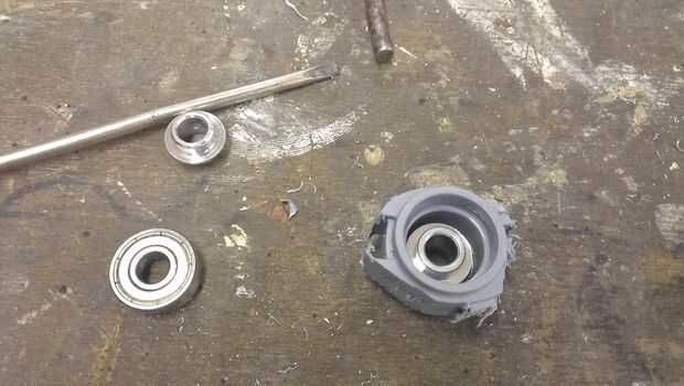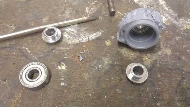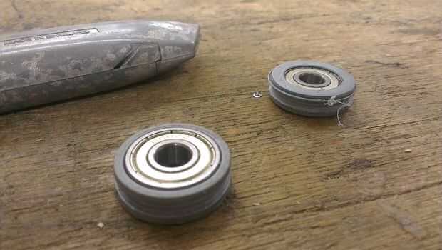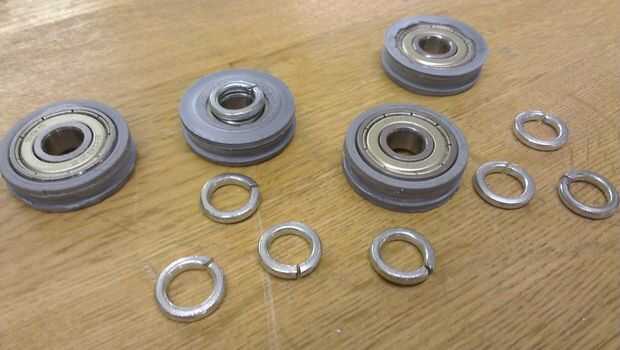 Para probar rápidamente rollos, montar el carro con solo las ruedas superiores. Utilice una tuerca M8 y tornillo, con una arandela pequeña a cada lado de la rueda de la abrazadera en la parte interior del rodamiento y asegúrese de que el cuerpo no falta la rueda o rodamiento externo. Estirar un trozo de línea y prueba para asegurarse de que funciona.