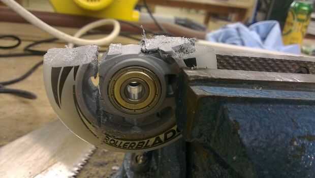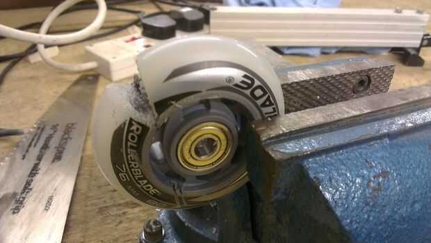 Si hay una cosa que haría diferente para este proyecto, sería comprar algunos nylon barra redonda y hacer mis propias ruedas desde cero. No habría sido más trabajo que bajar estas ruedas de patín en línea, podría haberlos hecho ligeramente más grande, y pude poner una ranura mucho mejor perfilada en ellos. La próxima vez. Por ahora, esto es más sobre lo que se puede hacer con hardware estándar. Si bien tengo bastante fantasia con esas ruedas de skate, poleas bien montadas y lubricadas haría el trabajo.