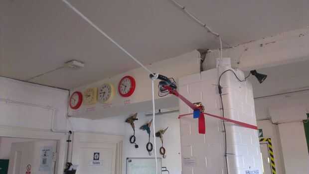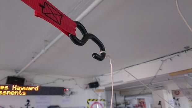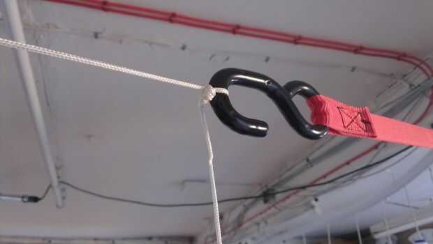Actualización: Línea estática es mucho mejor que lavan la línea en términos de tracción, y línea de 4 mm está disponible para aproximadamente £0,7 por metro. Para luces de más de 20m es más económico que el tendedero de la base de acero y viene en longitudes hasta 100m (tendedero, la máxima es de unos 30m). Es más fácil trabajar con porque puede utilizar nudos en lugar de las terminaciones de hardware, aunque es bastante elástico. Mi experiencia hasta ahora es que después de tensar por mí mismo, con el carro en el centro combará alrededor de un metro por treinta metros de luz. Con un amigo, estaría capaz de conseguir más tensión en la línea, porque podría estirar mientras cuido de conectarlo. En términos de lazos, me he probado unos cuantos más y como el lazo de la perfección.